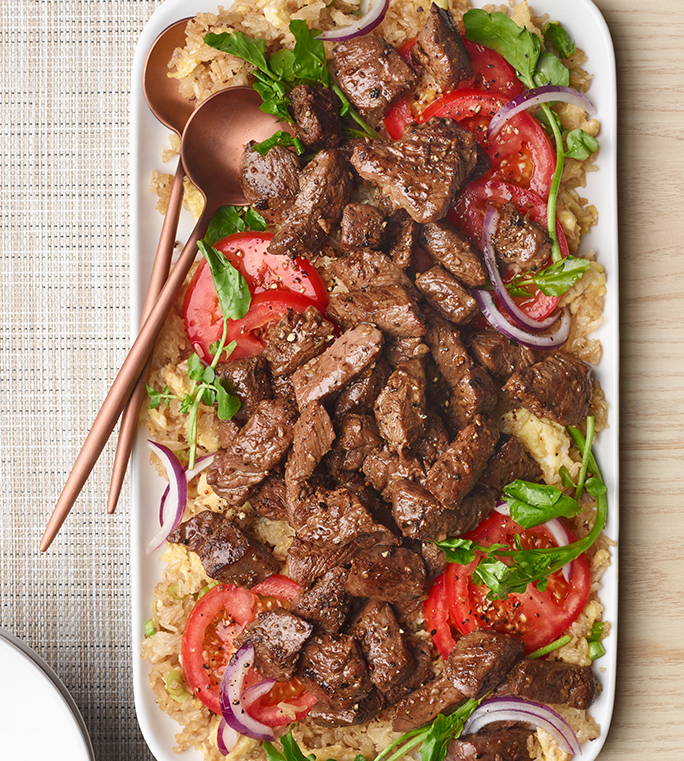To serve: Divide beef into four portions and serve with egg fried rice. Sprinkle with freshly ground black pepper.