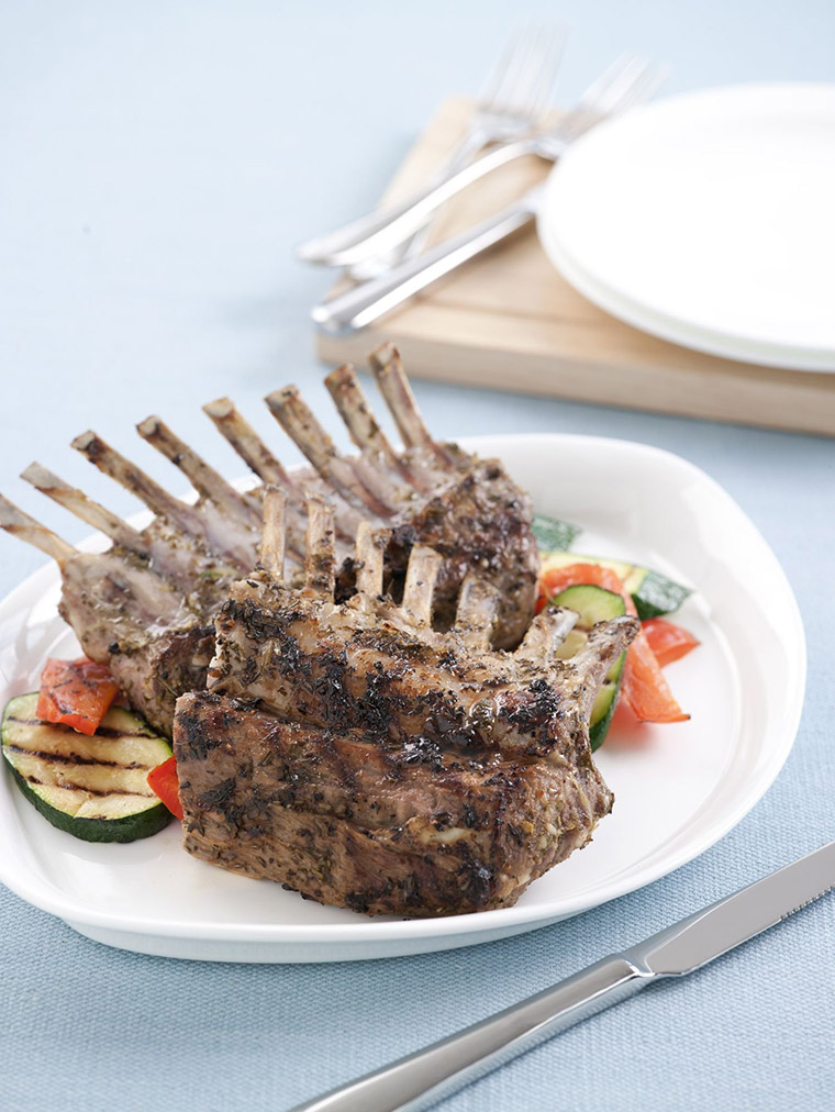 Combine the herbs, garlic, oil, rind and juice in a large bowl. Season well with salt and pepper. Add the racks of ribs, spooning over the herb mixture. Cover and marinate 1 hour.