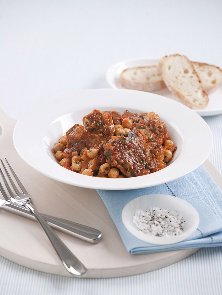 Add the chops and simmer over low heat for 30 minutes. Add the chickpeas or butter beans, simmer 10 minutes.