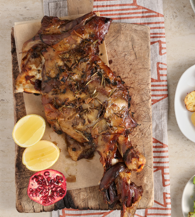Prepare the goat: Score the meat and season generously. Insert garlic and rosemary into the crevices, sprinkle with dried oregano, and drizzle with lemon juice.