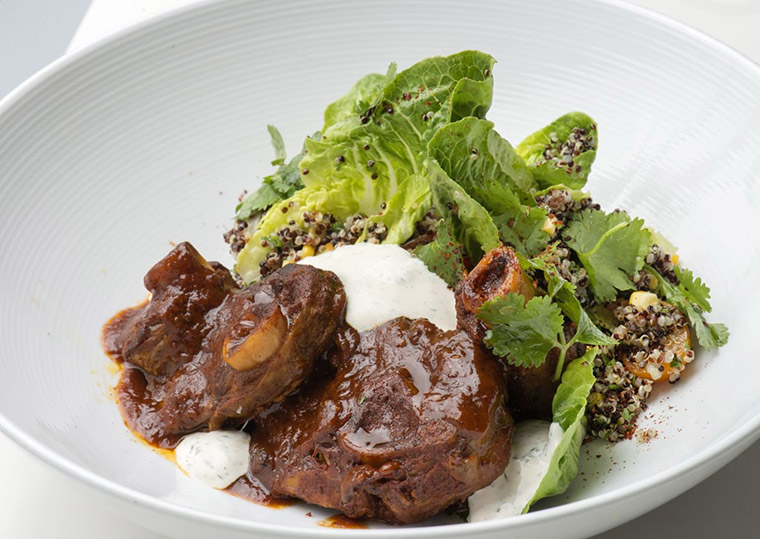Preheat the oven to 325 degrees F. In a blender or food processor, puree the juices, chipotle, sugar, garlic, tomato, Achiote, cinnamon, oregano, cumin, cloves, and allspice. Season the lamb with salt and pepper. Heat the oil on medium-high heat in a cast-iron or ovenproof pot. Sear the shanks on both sides. Pour the pureed sauce over the lamb. Cover and cook the lamb for 2 ½ hours, or until the meat falls from the bone.