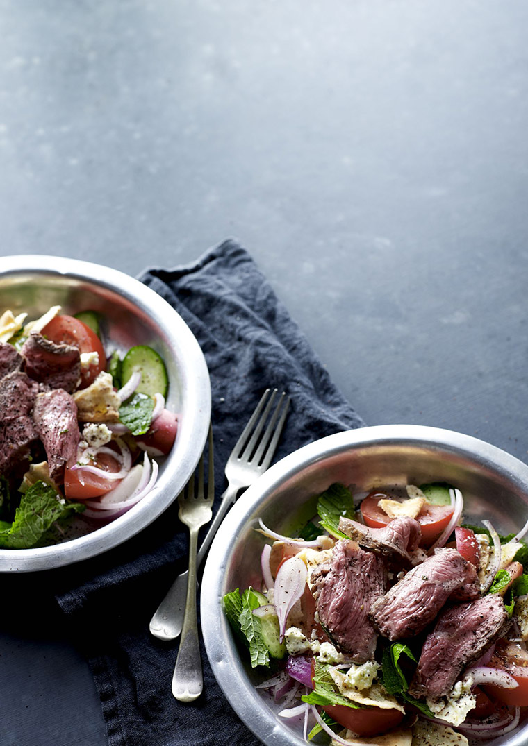 Z’atar spiced lamb, fattoush salad and persian fetta